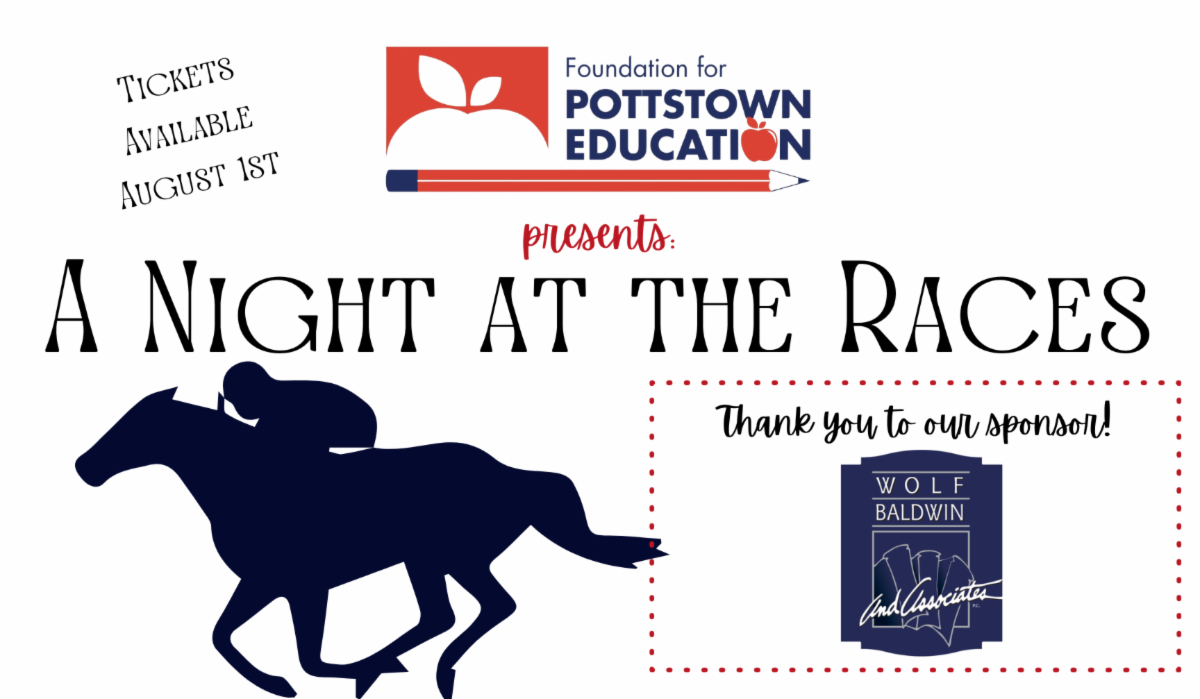Foundation for Pottstown Education- Night at the Races + Add to Google Calendar + iCal / Outlook export Date Oct 04 2025 Time 6:00 pm - 9:00 pm Read More Share this event